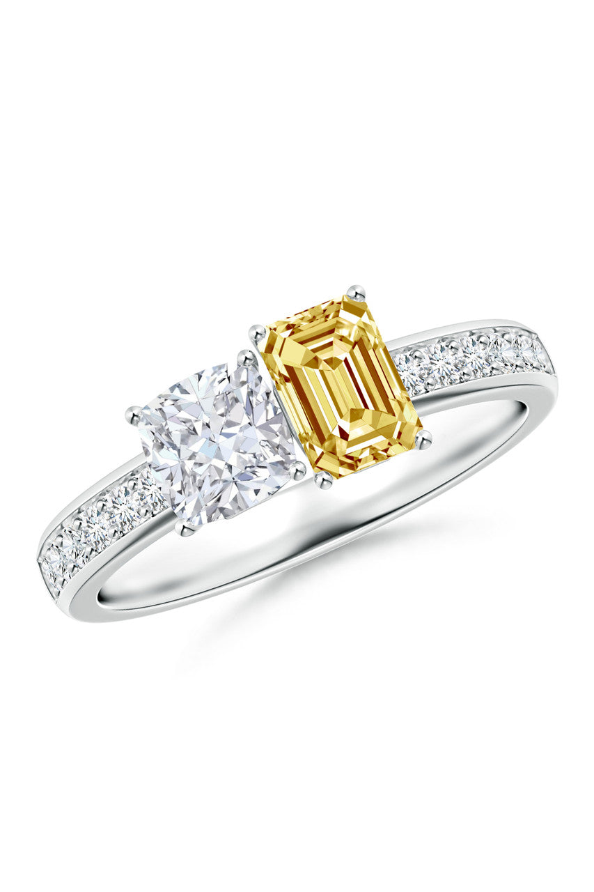 Details & Care For Orient Express Lab-Grown 14K Gold with White & Yellow Diamond Two Stone Ring