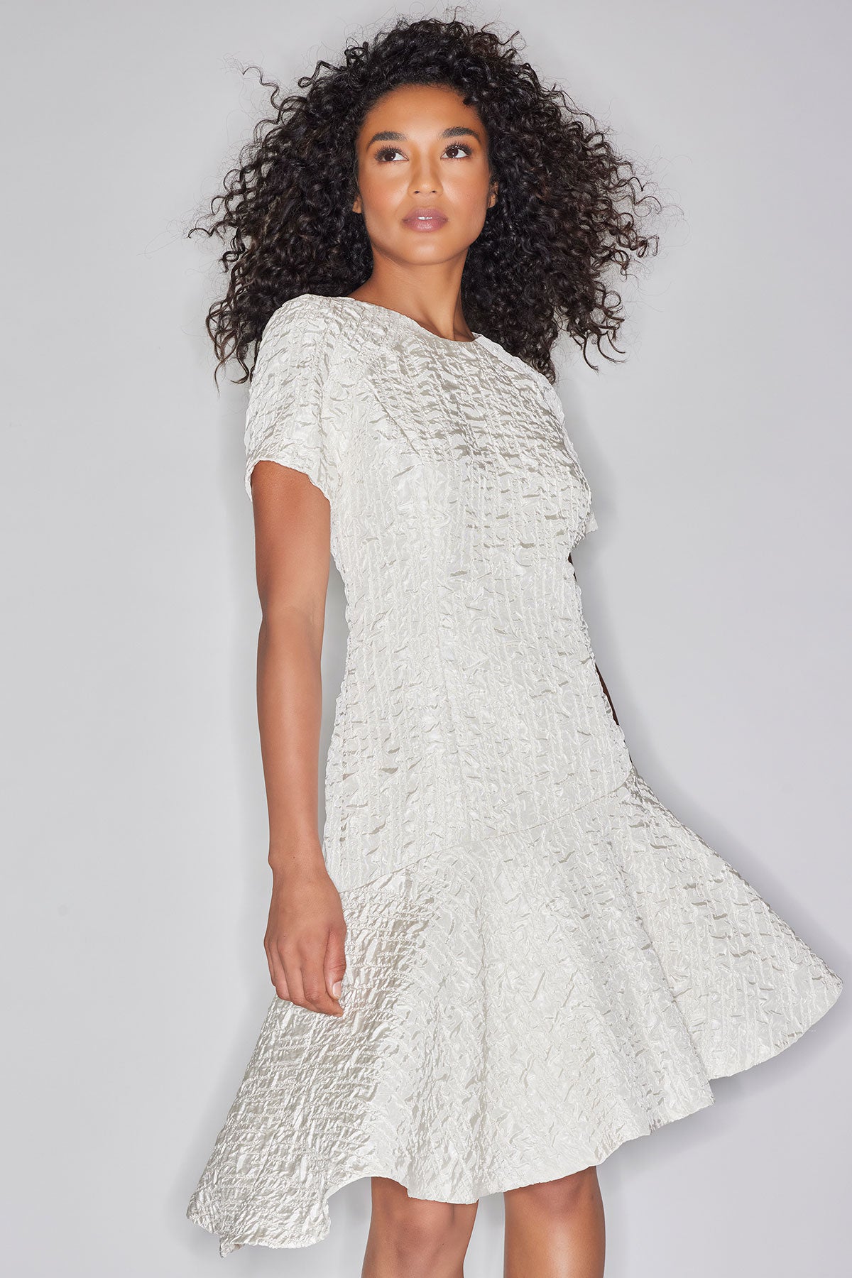 Details & Care For Pebbled Jacquard Short Sleeve Flounce Dress