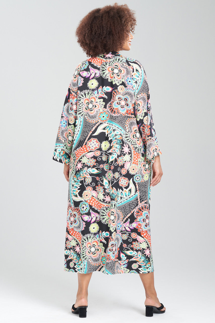 - Flowy long sleeve caftan with zipper closure front for adjustable fit