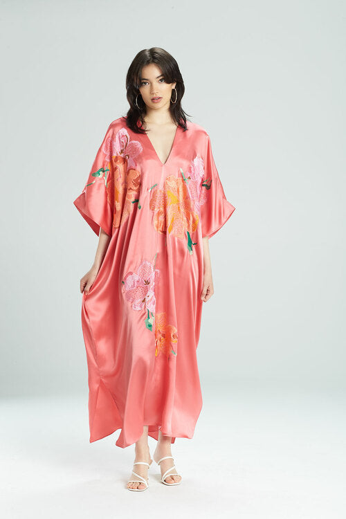 Details & Care For Peony Blossoms Embroidered Silk Caftan