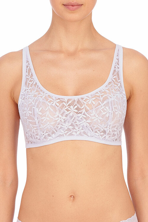 Modern new silhouette designed with botanical lace, lightweight mesh and a foam sling, makes the perfect underpinning under tops, tanks and dresses. Rave, stretch lace back is lined with mesh for 38C and up