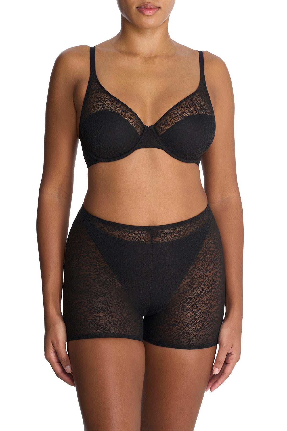 - Modern stretch lace with lightweight control that maintains its shape on the body