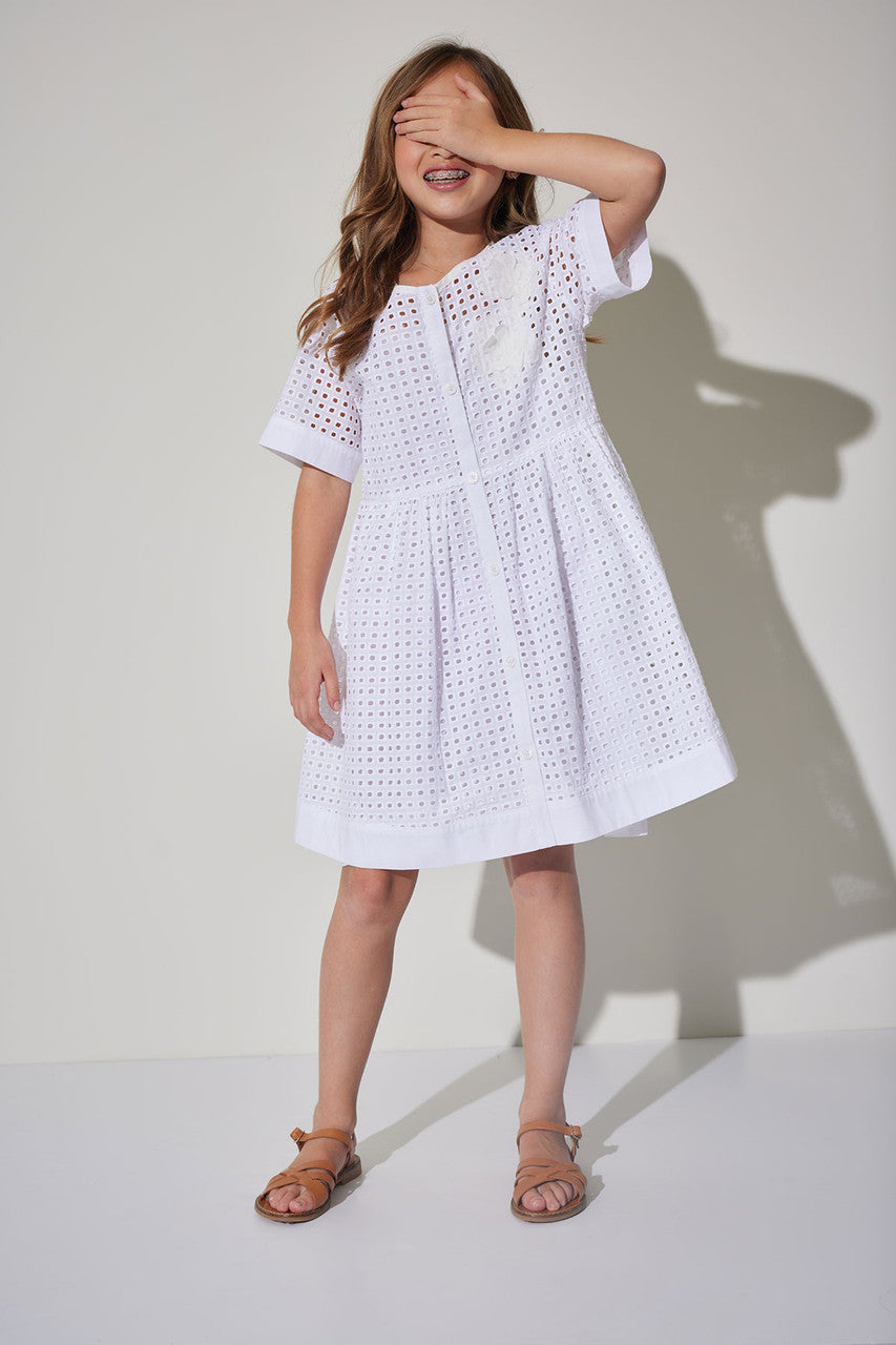 Now your littles can match back to you. Complete her summer wardrobe with cotton eyelet. Small patterned cut-outs with embroidered stitches.