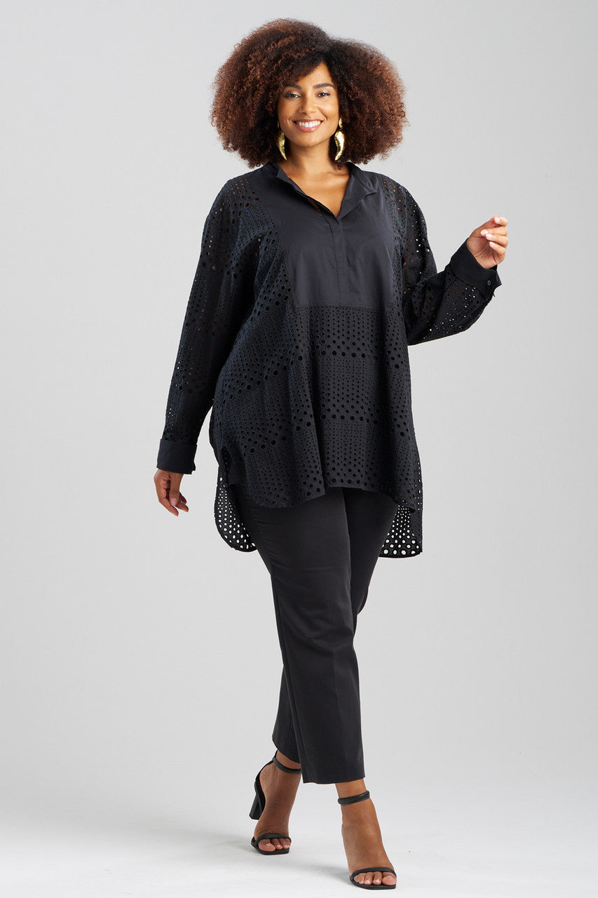 Details & Care For Round Eyelet Oversized Tuxedo Shirt