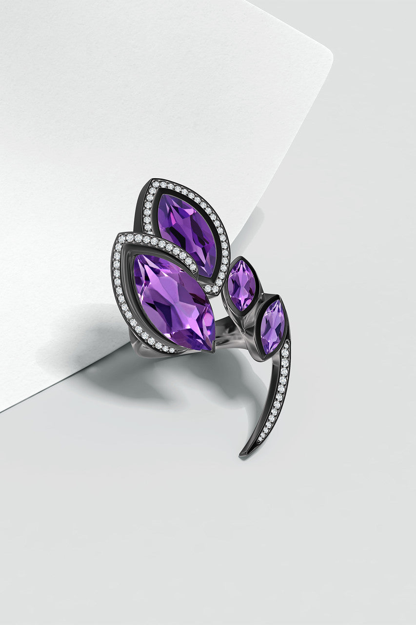 Runway Collection Sumi Amethyst and Diamond Statement Ring