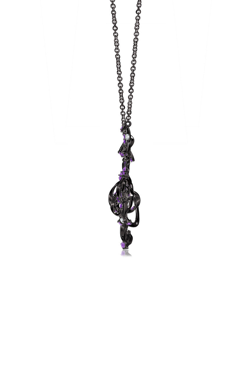 Sakura Midnight Silver Ombre Amethyst Asymmetrical Necklace