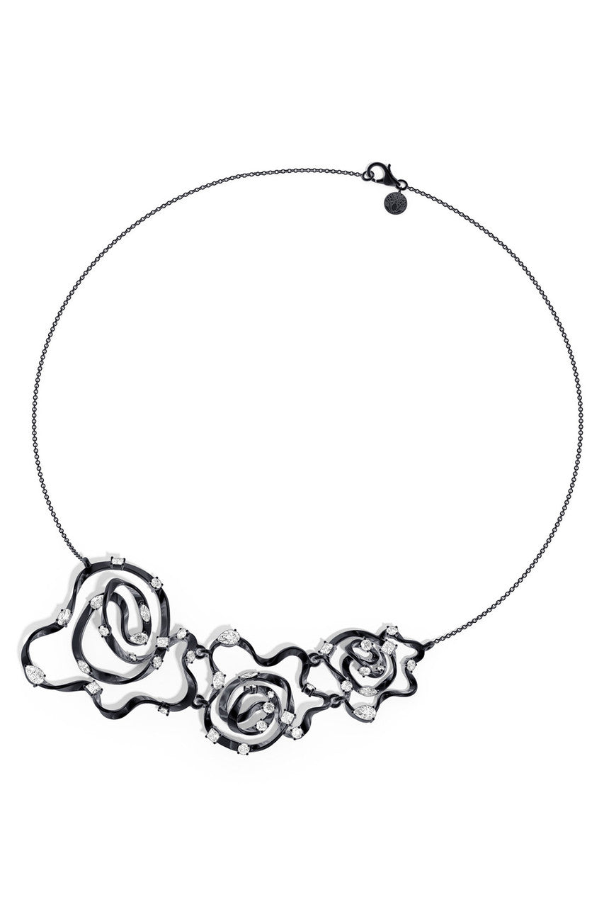 Details & Care For Sakura Midnight SIlver White Topaz Asymmetrical Necklace