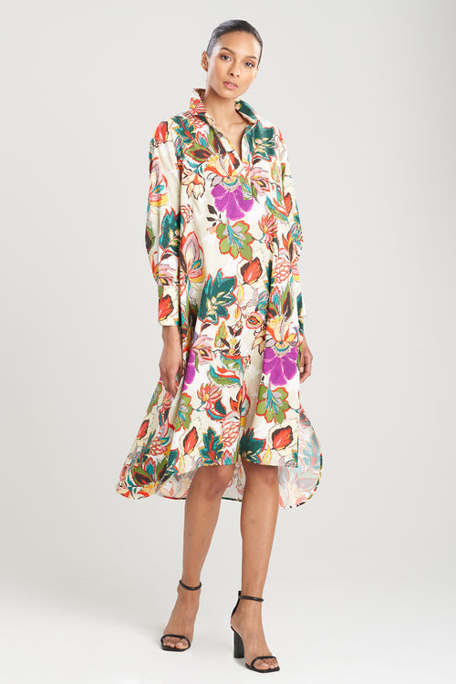- Our classic, oversized, long sleeve shirtdress with a half placket and high low hem in our incredible multicolored floral Sayuri print