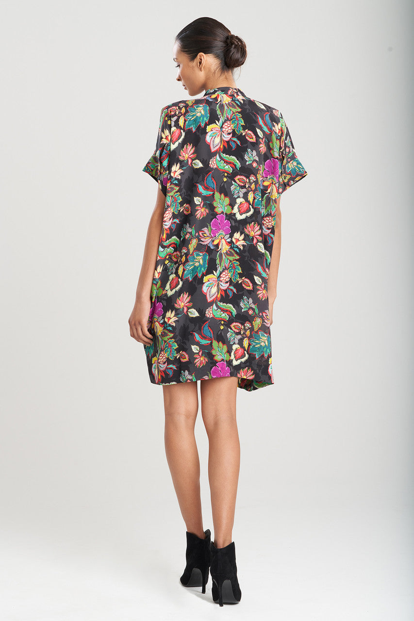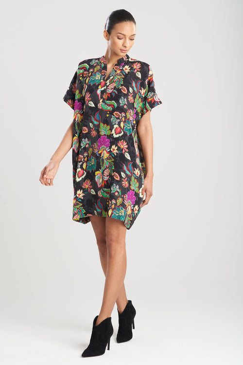 - Knee length caftan dress and a half placket in our airy crepe de chine
