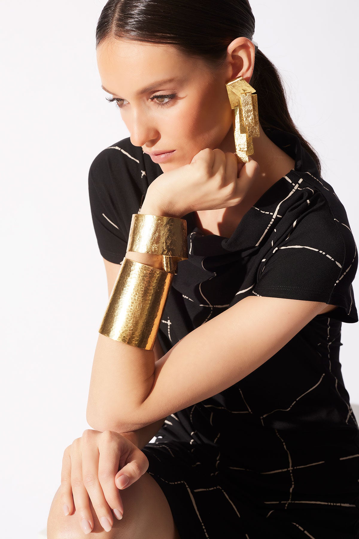 Details & Care For Sculptural Gold Plated Brass Cuff Bracelet