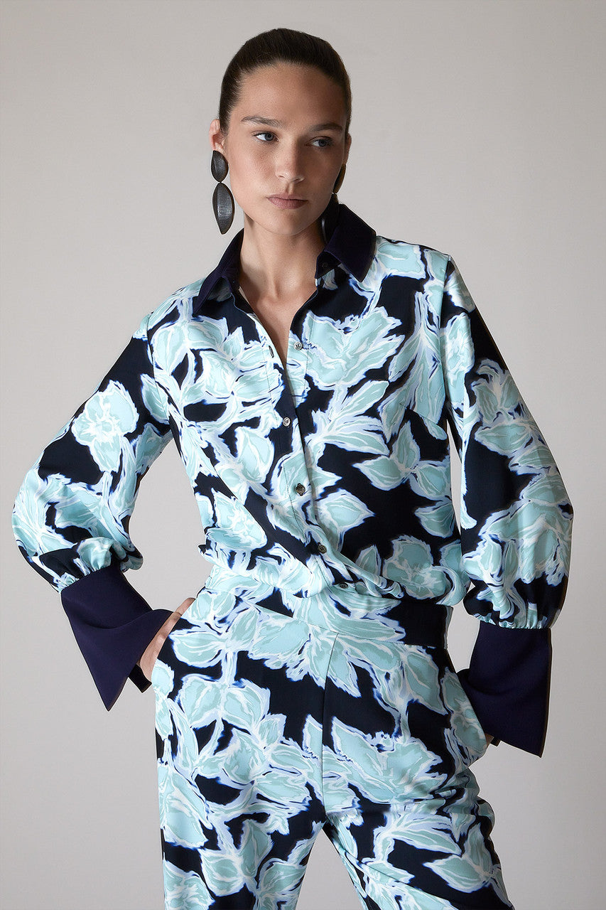 Details & Care For Shibori Floral - Fluid Crepe Pull On Pants - shibori blue