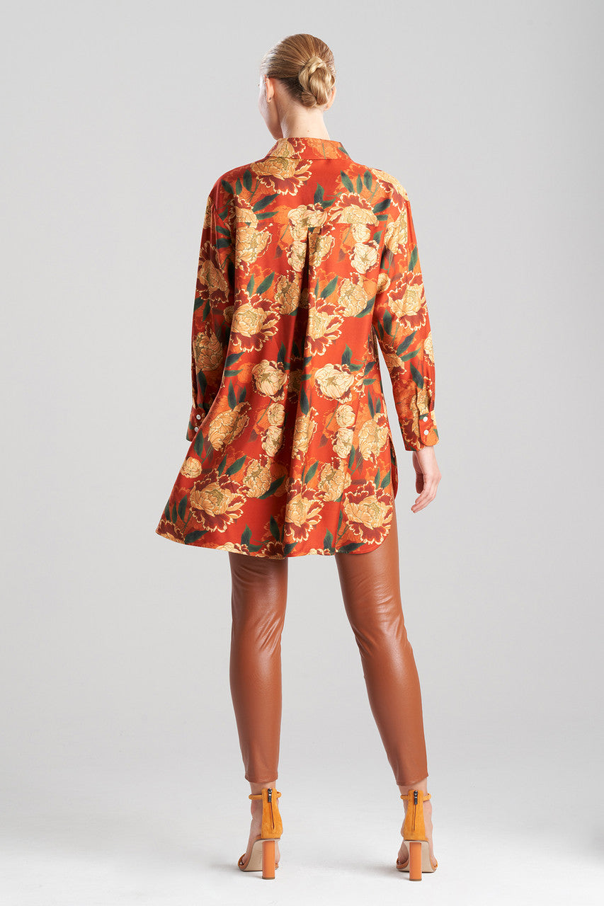 - Oversized, long sleeve half placket shirt with high low detailing in our soft cotton silk twill
