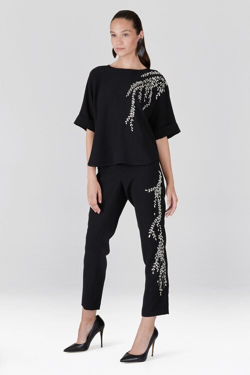 Details & Care For Solid Crepe Embroidered Ankle Pants
