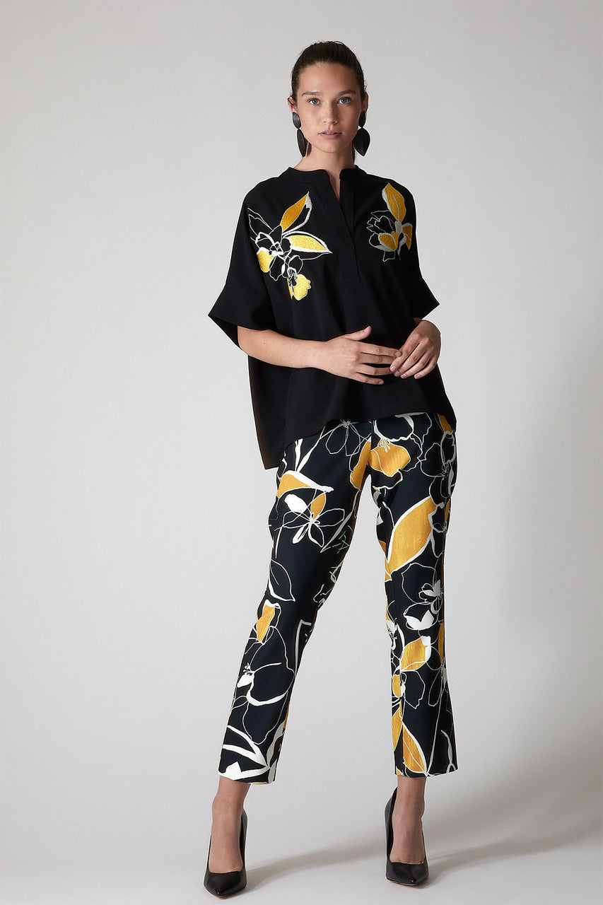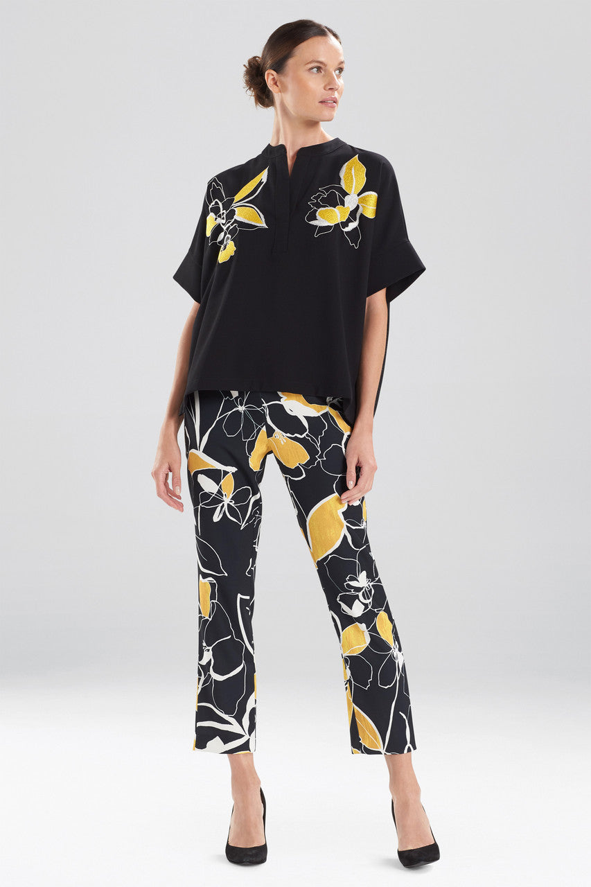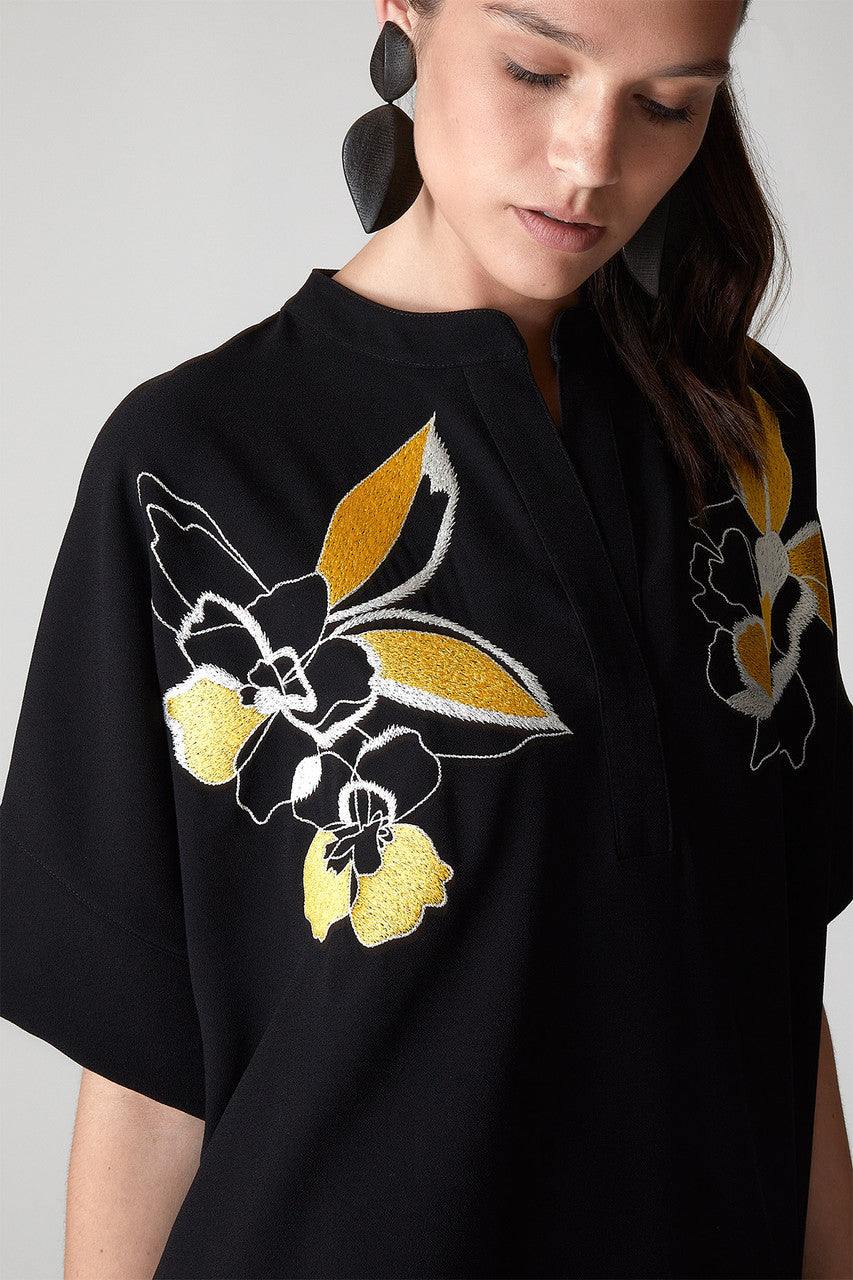 Details & Care For Solid Crepe Embroidered T-Shirt Top