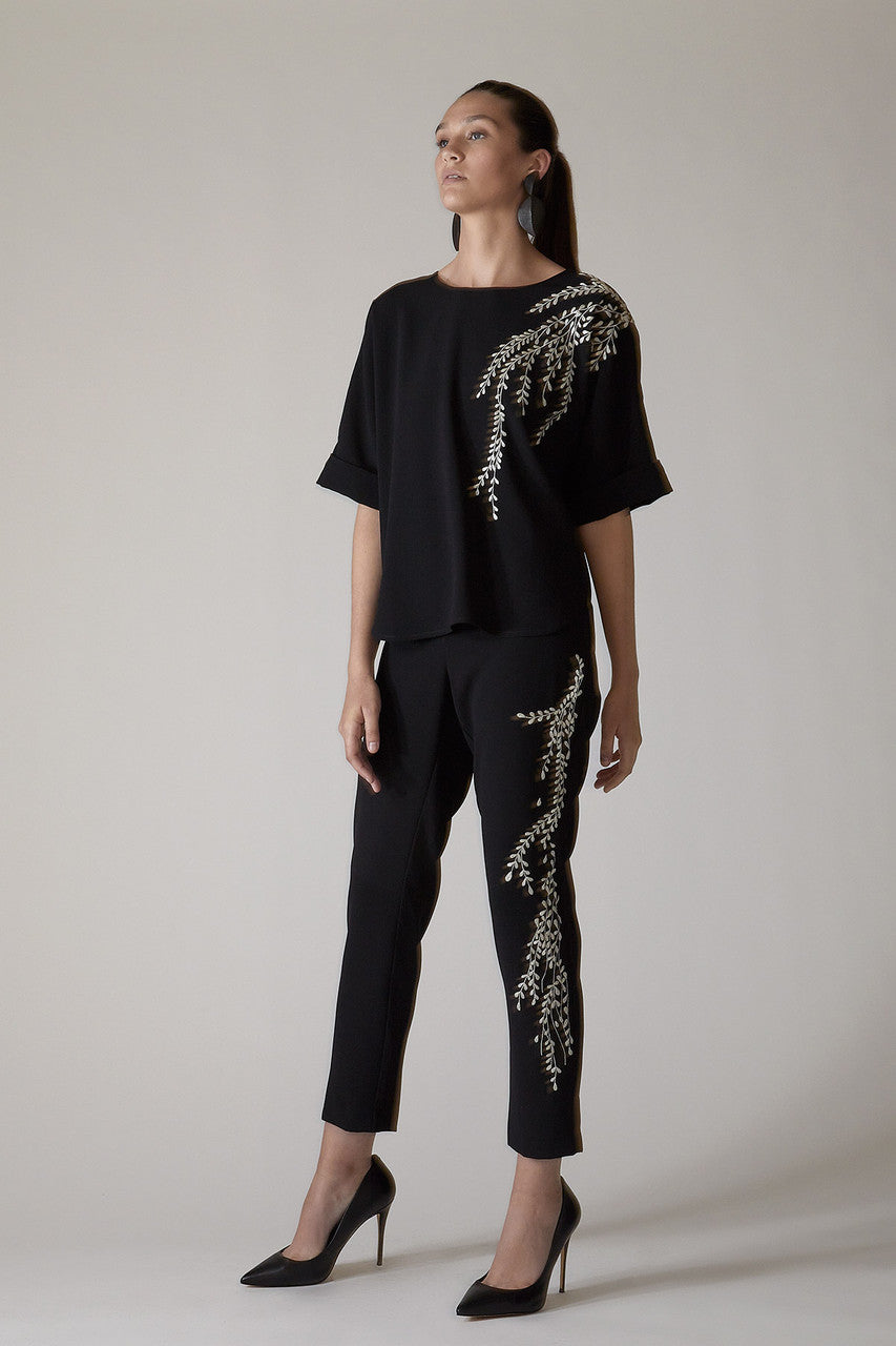 Details & Care For Solid Crepe T-Shirt Top With Embroidery