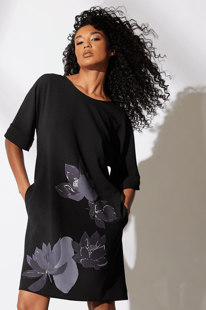 Details & Care For Solid Knit Crepe Embroidered T-Shirt Dress