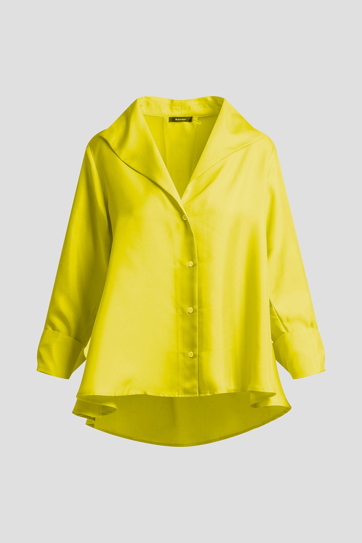 Details & Care For Solid Silk Twill Button Down Trapeze Shirt