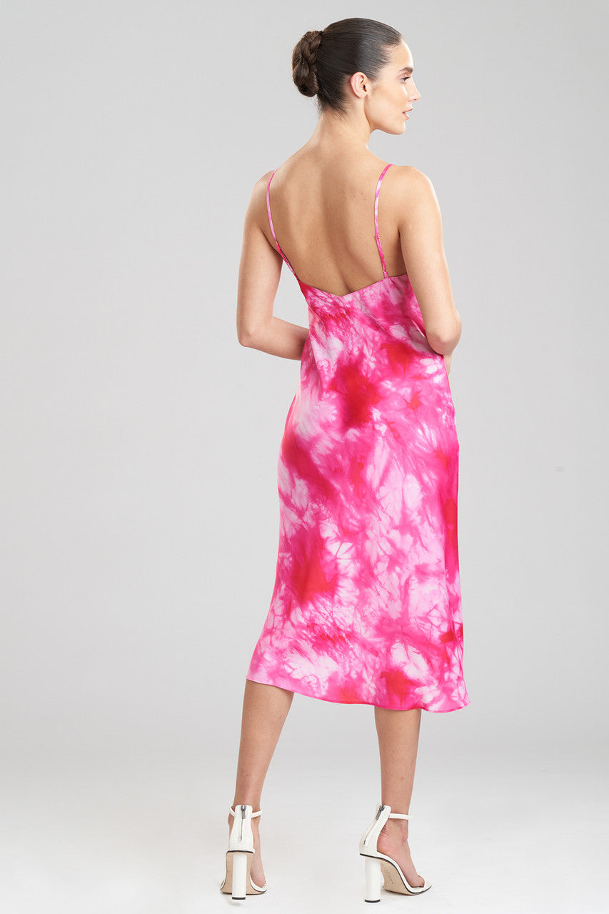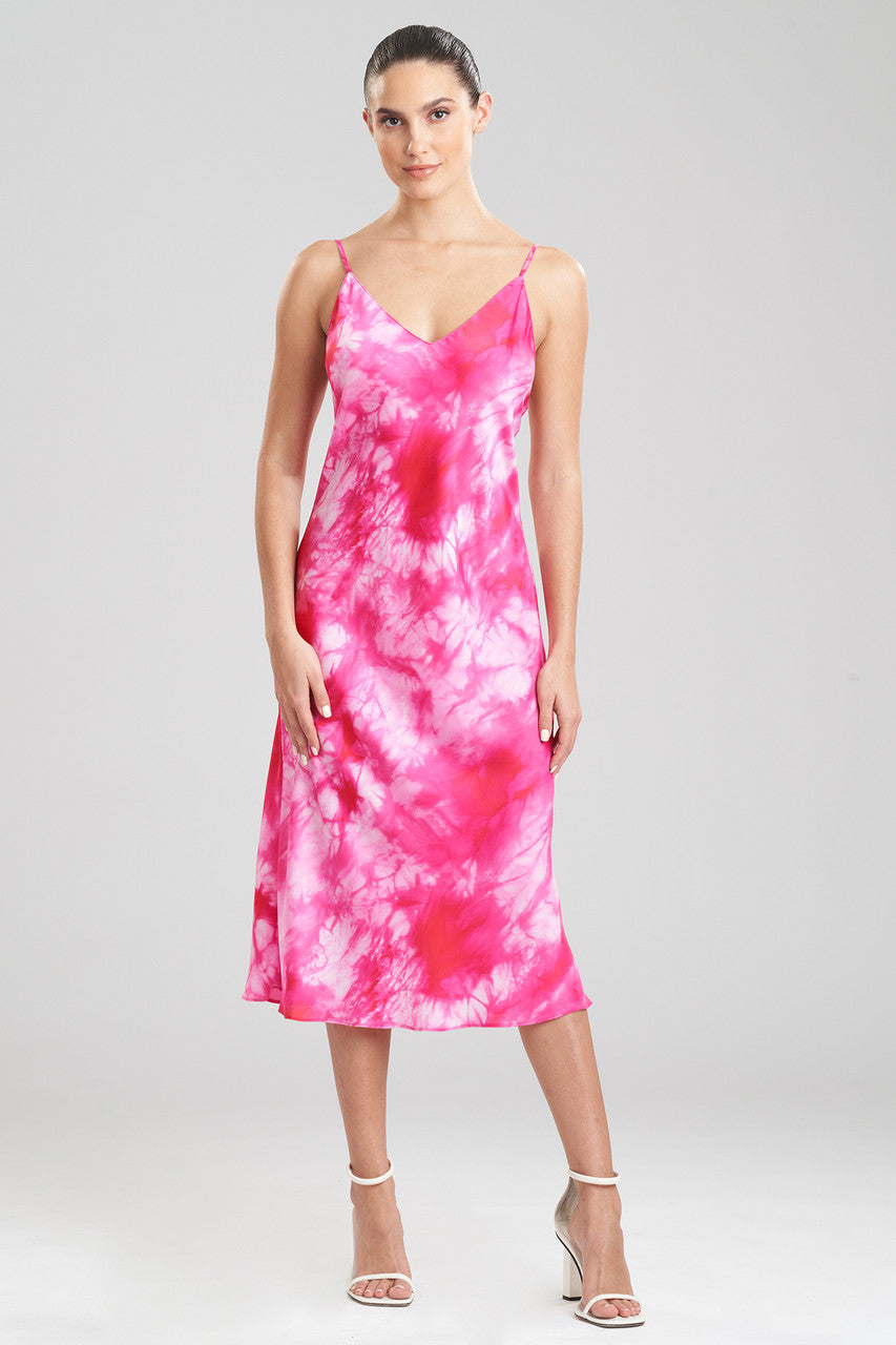 Stay in or step out in tie-dye on printed satin.