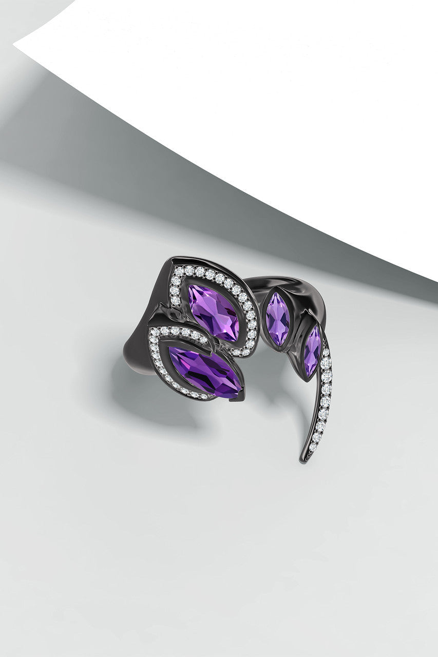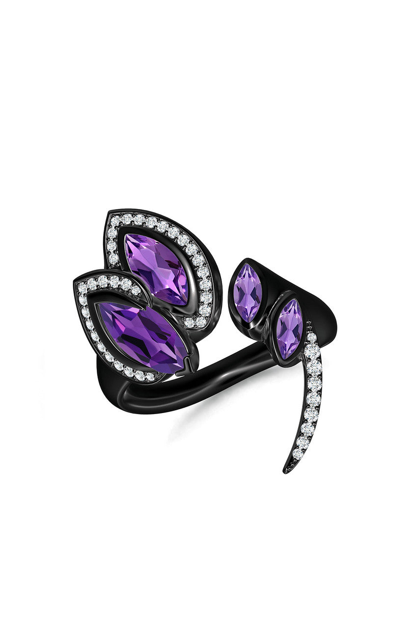 Details & Care For Sumi Stroke Midnight Silver Marquise Amethyst & Pave Diamond Statement Ring