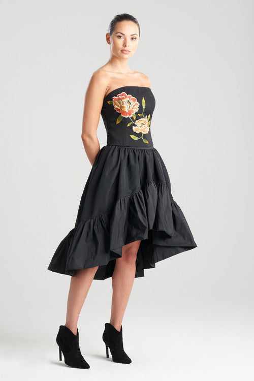 Crisp and lustrous fabric from Italy. A lightweight balloon skirt that holds it shape.