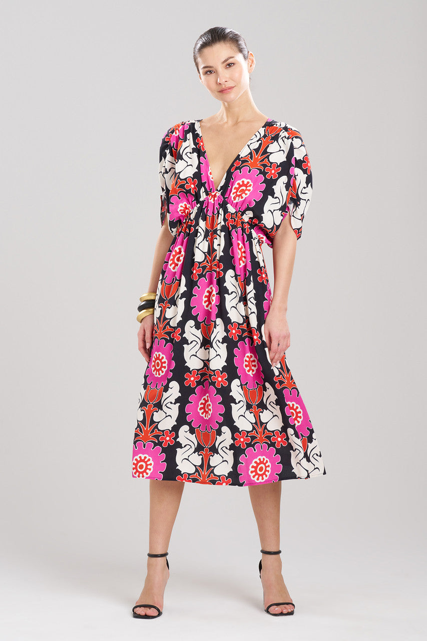 - Pullover shirred v-neck dress with elastic for stretch and ease of wear