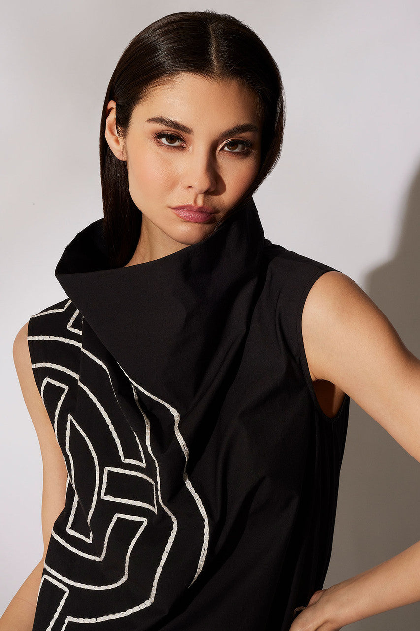 Details & Care For Tech Cotton Taffeta Embroidered Funnel Shift Dress