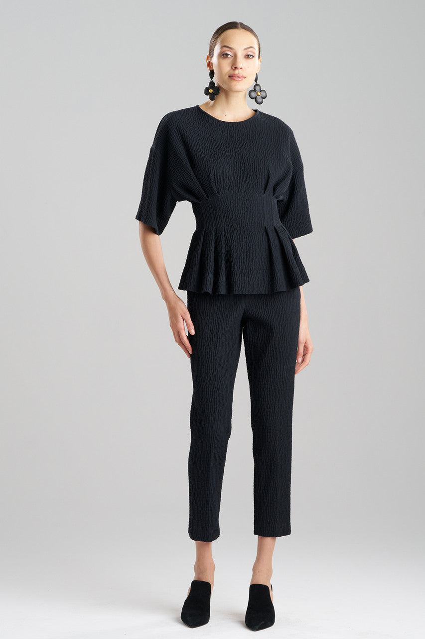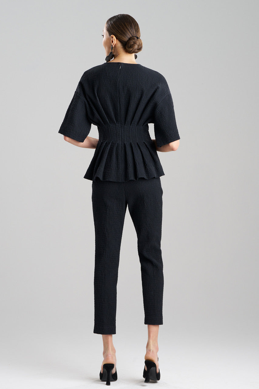 Details & Care For Textured Cotton Jacquard Pleated Peplum Top