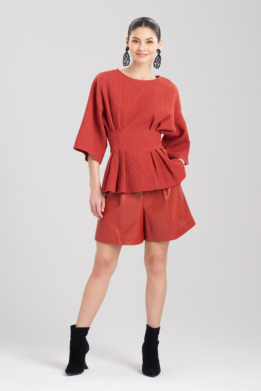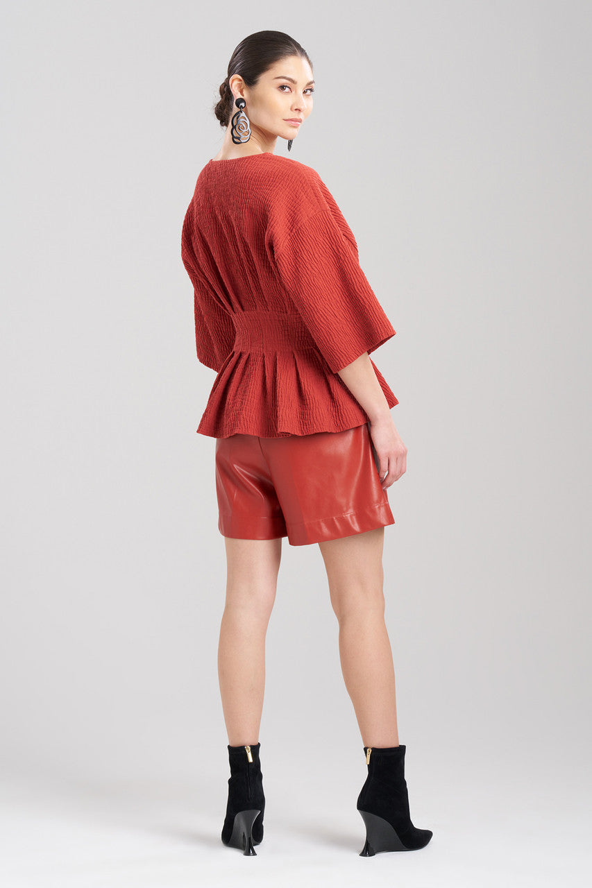Details & Care For Textured Cotton Jacquard Pleated Peplum Top