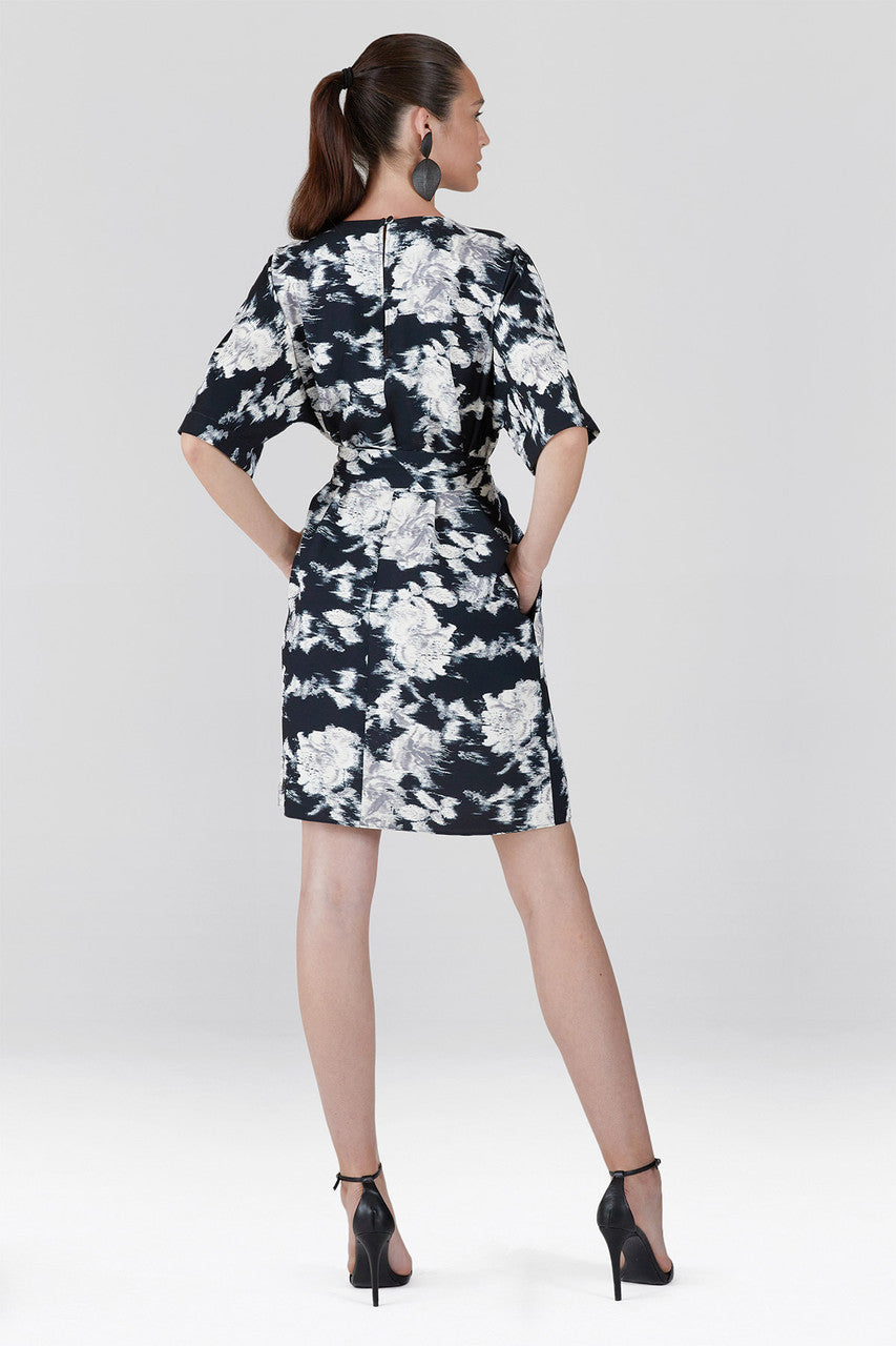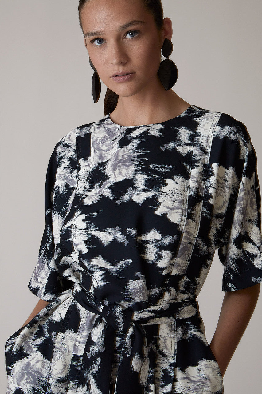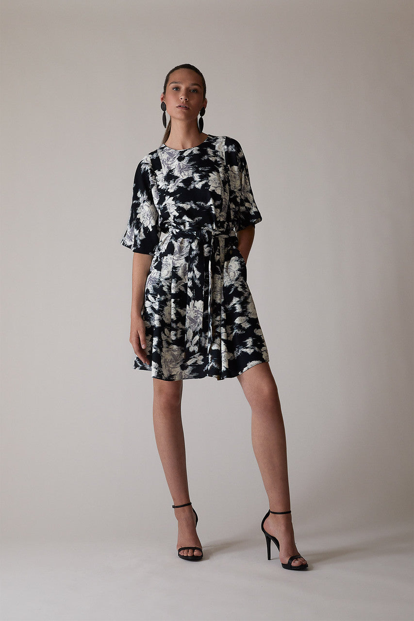 Details & Care For Tie-Dye Floral - Fluid Crepe Pleated Dress - black with white