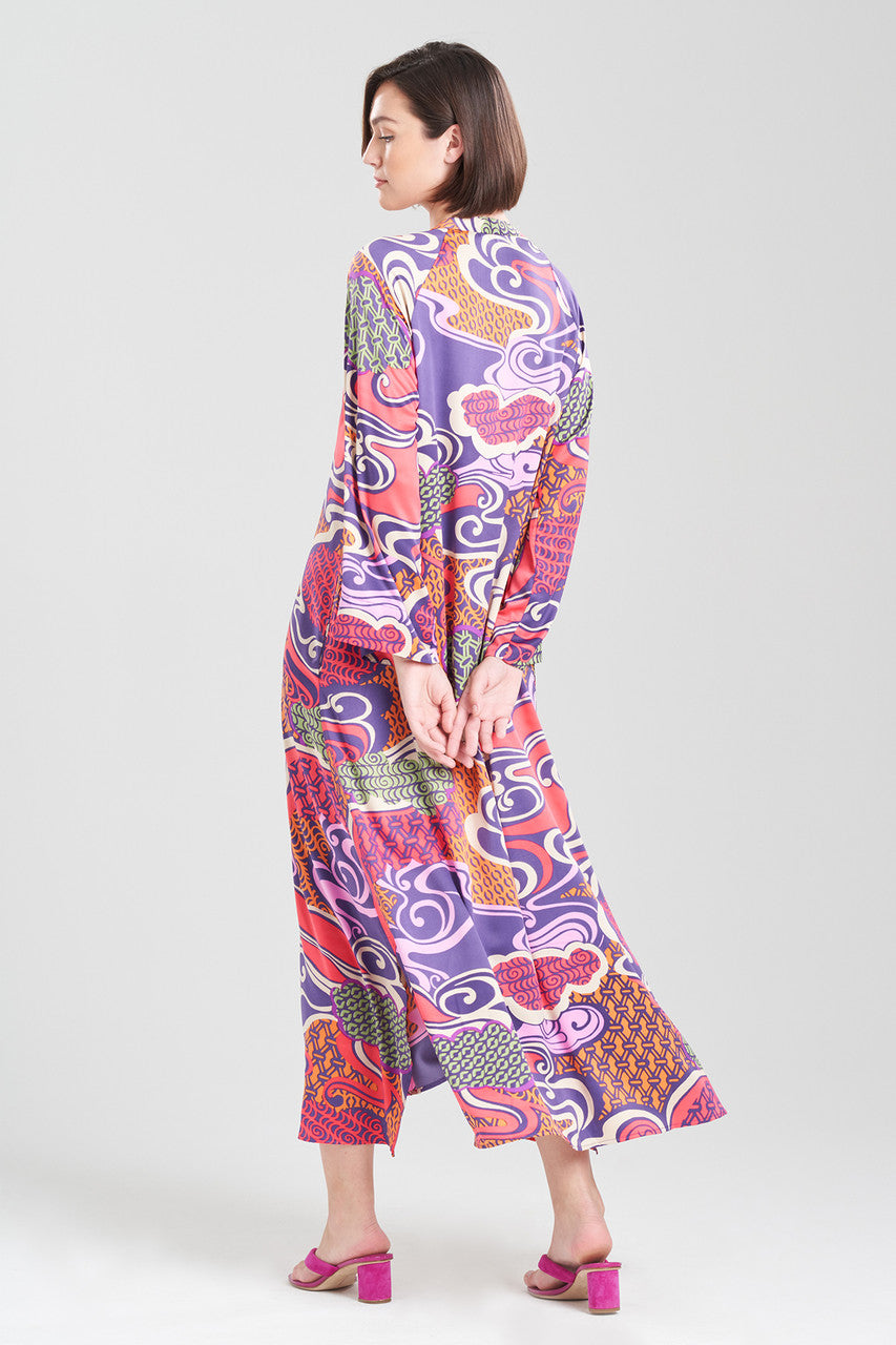 - Flowy long sleeve caftan with zipper closure front for adjustable fit