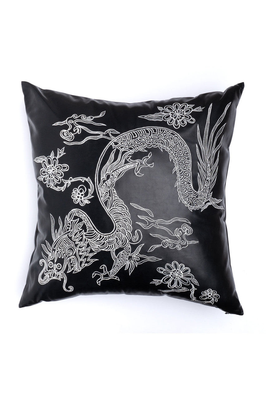 Details & Care For Vegan Luxe Leather Mandarin Embroidered Dragon Pillow