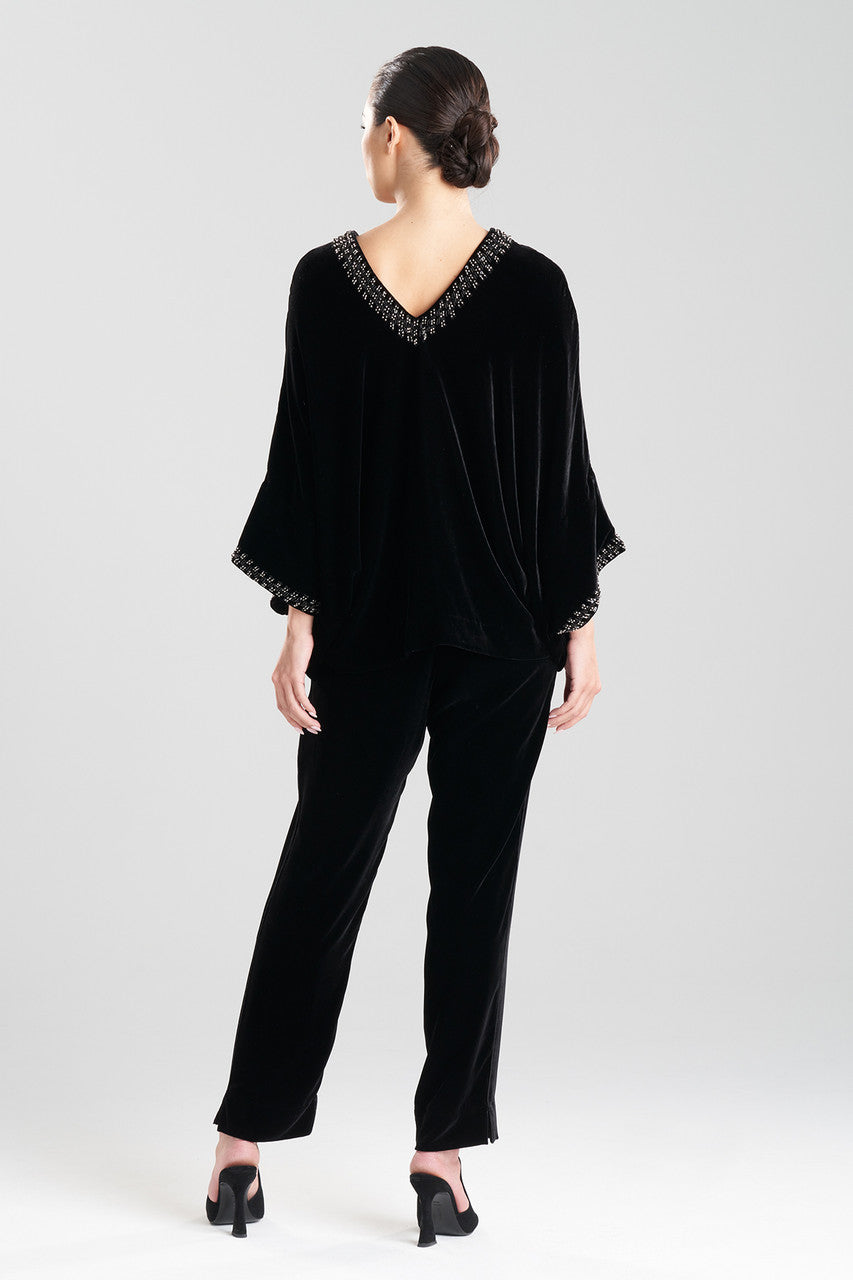 - Our plush velvet kimono sleeve top with a V-neck and delicate beading