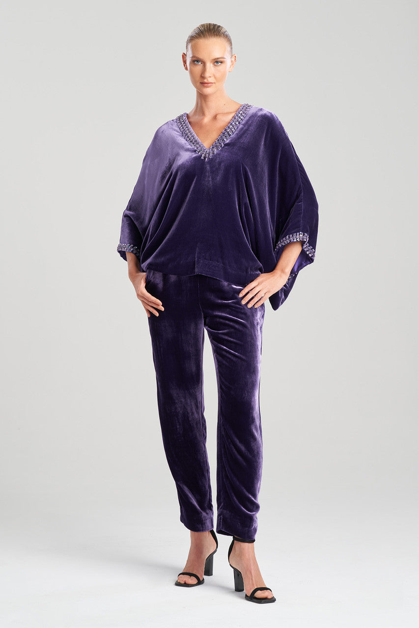 - Our plush velvet kimono sleeve top with a V-neck and delicate beading