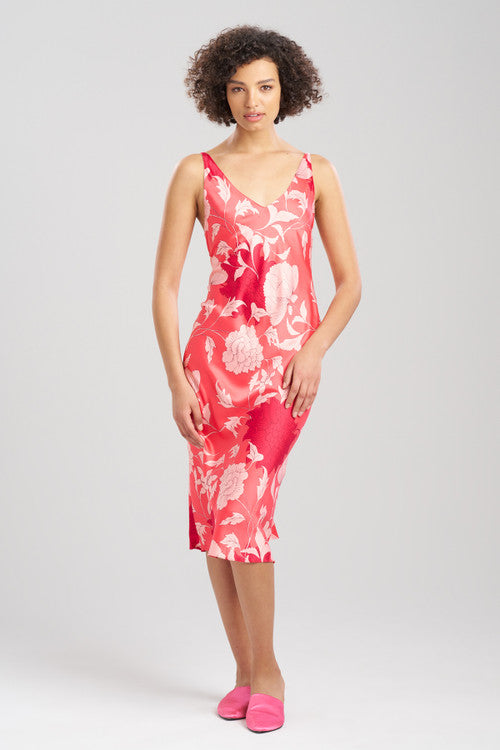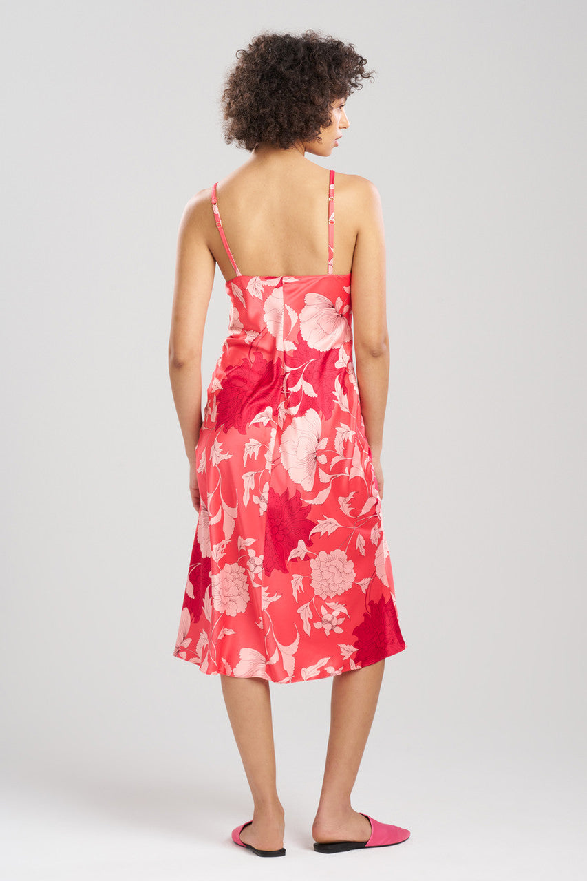 Oversized florals meets matte stretch satin.