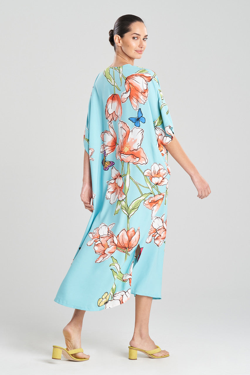Slip into the dramatic floral and butterfly printed charmeuse.