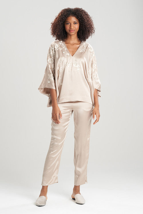 - Luxurious kimono sleeve top with a V-neck and Natori exclusive embroidery