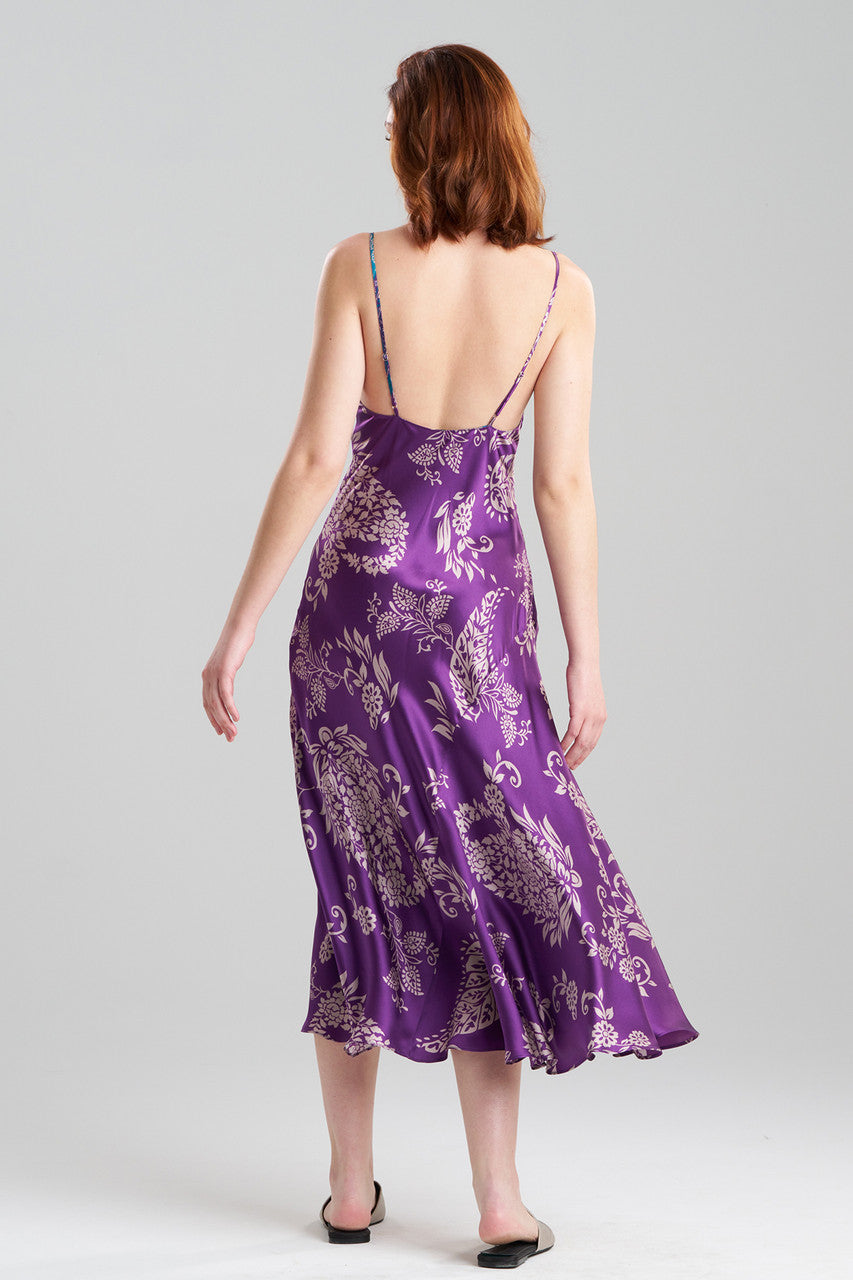 Feel regal in exuberant purple in a figure flattering silhouette. A harmony of intricate paisleys and luxe silk.