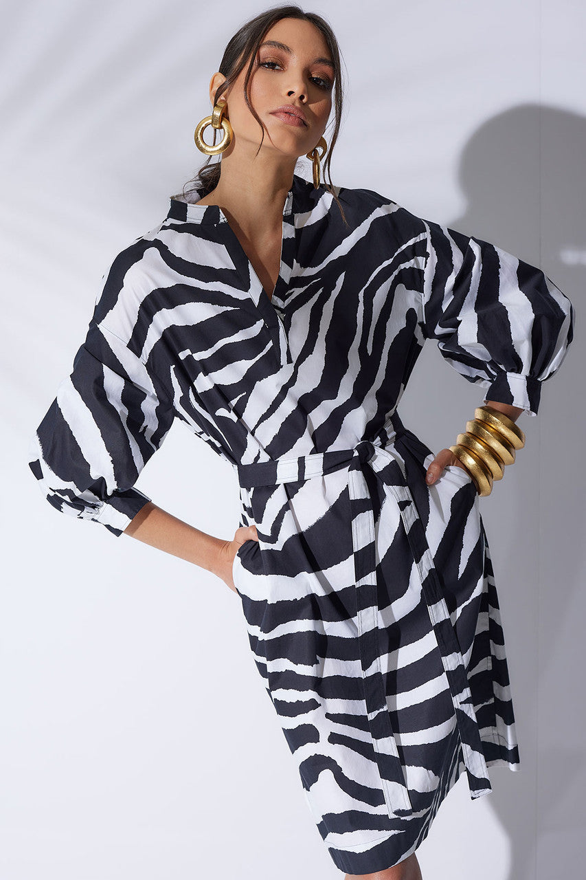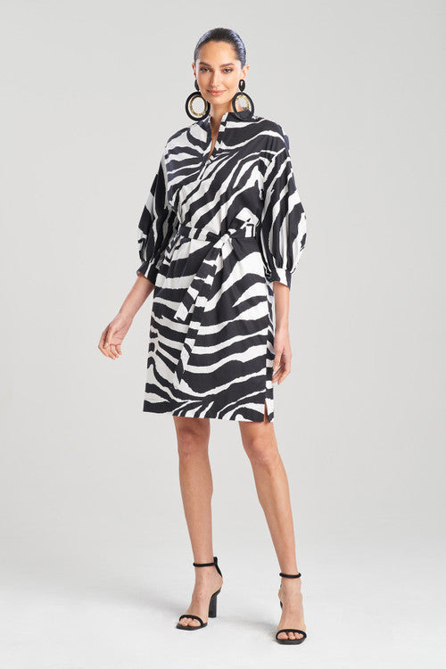 Details & Care For Zebra Cotton Poplin Balloon Sleeve Belted Shirtdress
