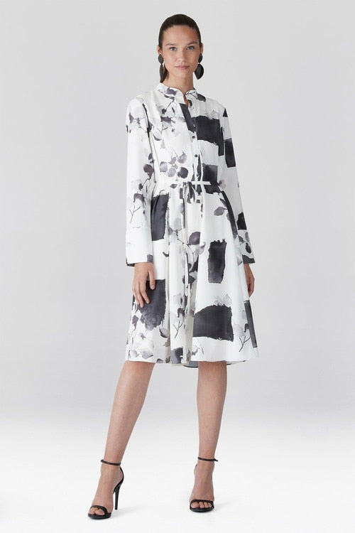 Details & Care For Zen Garden - Silky Soft Shirt Dress - white with black